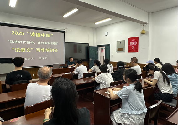 培训会上,吴老师围绕记叙文的核心要素展开讲解,从如何巧妙构思故事框架,到怎样塑造鲜活生动的人物形象;从细节描写的重要性,到情感表达的技巧,都进行了深入浅出的剖析。为了让同学们更好地理解,吴老师结合了大量优秀记叙文范例,既有经典文学作品片段,也有往届“读懂中国”活动中的精彩征文,逐句分析写作手法,讲解妙趣横生。