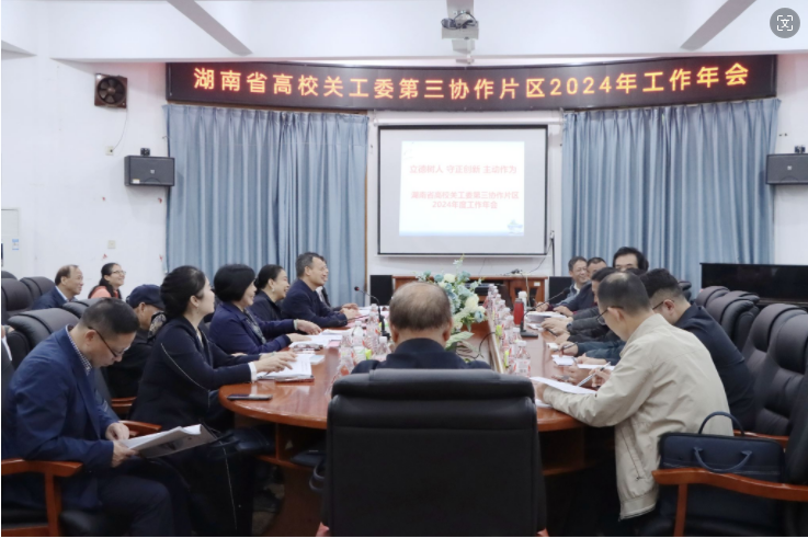4月12日,湖南省高校关工委第三协作片区2024年工作年会在我校西校区离退处会议室召开,来自第三协作片区的12所高校关工委的代表近40人参加会议。省教育厅关工委副秘书长钟大蔚,我校党委副书记陈敏,第三协作片区负责人、湖南师范大学关工委常务副主任徐书华等出席年会。会议由学校关工委常务副主任张登玉主持。