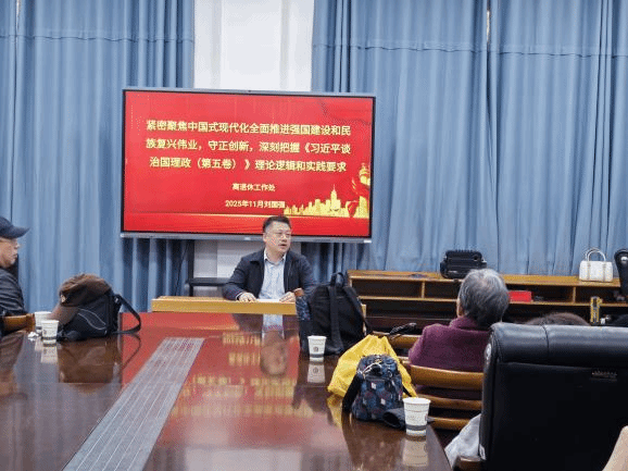 首先,支部党员进行了集中学习。离退休工作处党委副书记、副处长刘国强同志受邀为支部上以“紧密聚焦中国式现代化全面推进强国建设和民族复兴伟业,守正创新,深刻把握“《习近平谈治国理政》”(第五卷)理论逻辑和实践要求”为主题的微党课。前任支部书记王丽华老师讲析纪念中国人民抗日战争暨世界反法西斯战争胜利80周年阅兵式的历史与现实意义和观后感。大家积极发言,谈学习心得、读后感和观后感。在学习过程中,深刻领会习近平新时代中国特色社会主义思想的核心意义和实践要求。